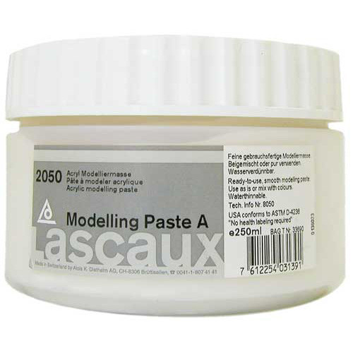 Opaque, ready-to-use modeling pastes available in unique colors, textures and weights. Use pure or mix with colors, colors will only be minimally altered. They are waterproof when dry and can be painted over. They are flexible with excellent adhesion properties and won't crack in thick layers. Available in smooth texture (Paste A) and rough texture (Paste B).