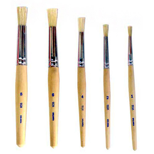 Used extensively by industry for gluing, cleaning or stencil work. Also used by schools. Seamless aluminum ferrules will not scrape fingers or snag clothes. Plain white wood handle with rounded end. Overall length approximately 6 inches.